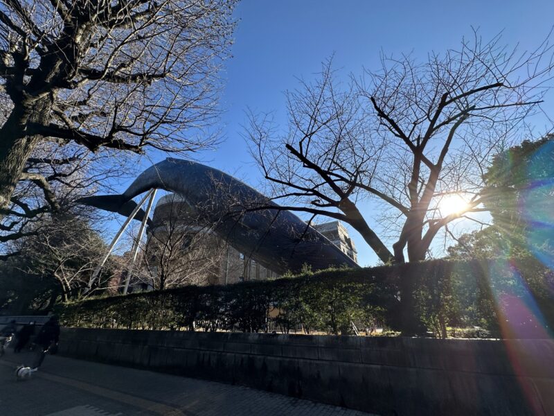 階段を歩いていたら窓外に、見慣れたどでかいクジラを見下ろすことができました。